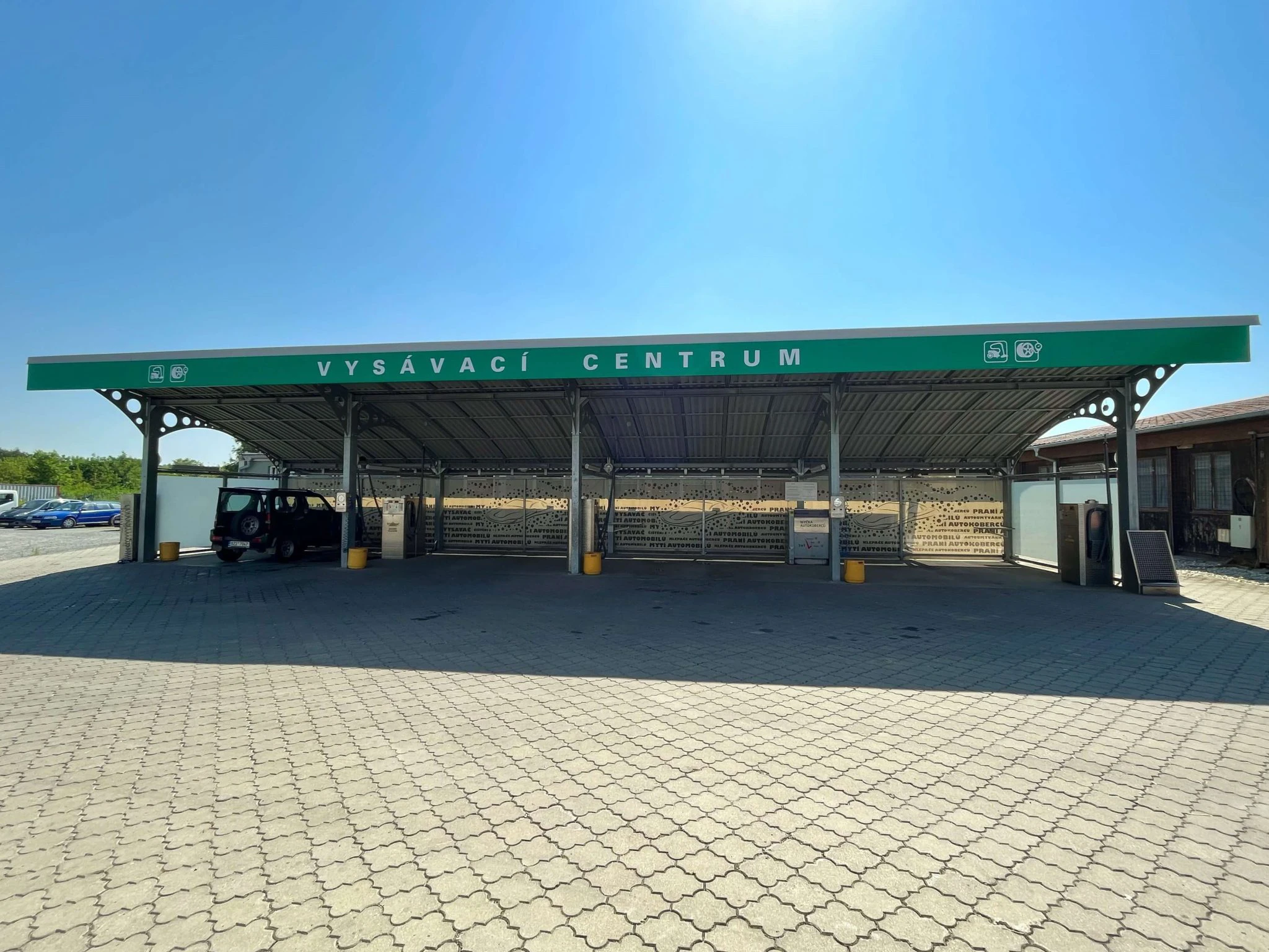 V zastřešeném vysávacím centru pro vás máme čtyři vysavače a tři hustiče pneumatik. U každého vysavače jsou nerezové stolky, kam si můžete při vysávání odložit věci z auta, aby vám nepřekážely.