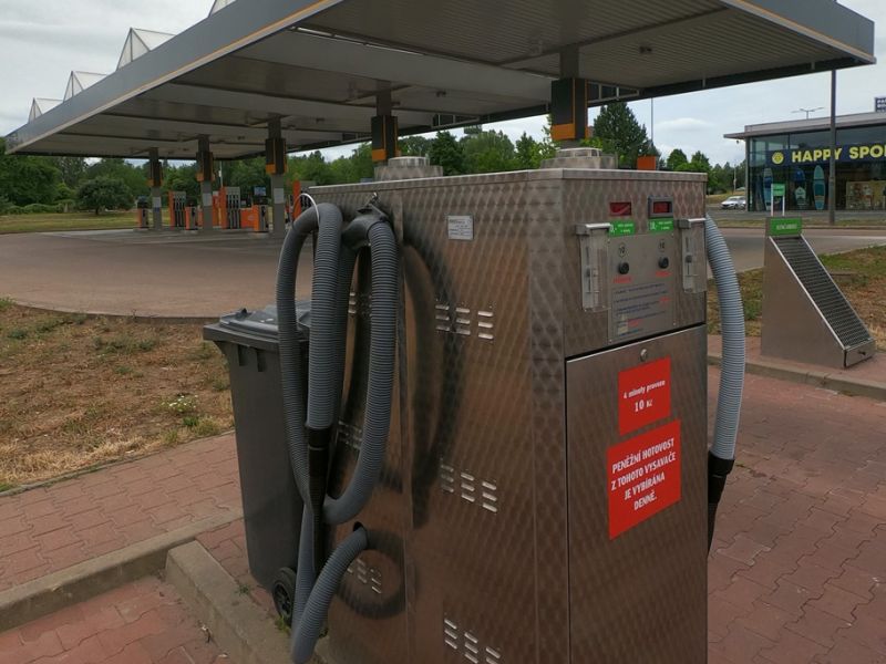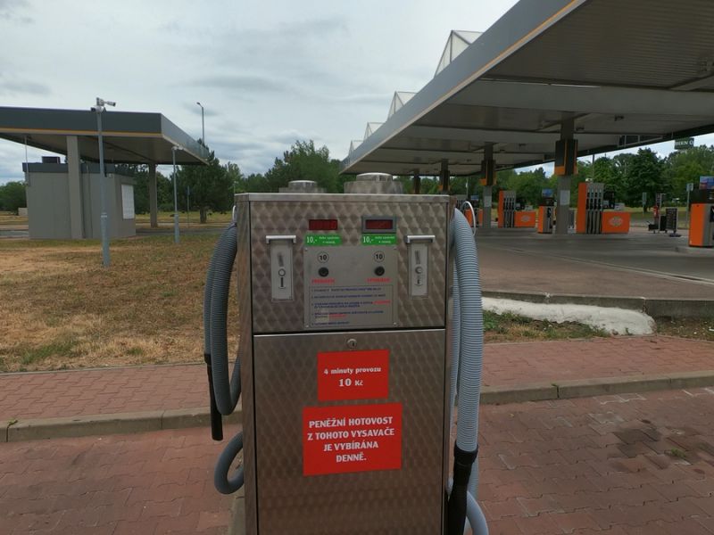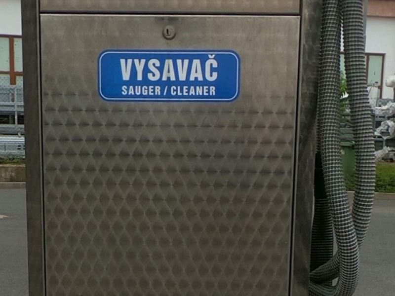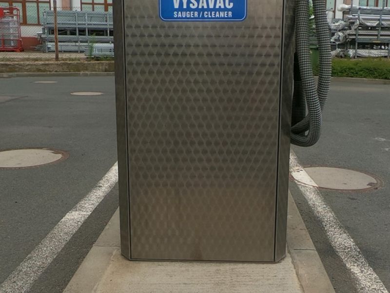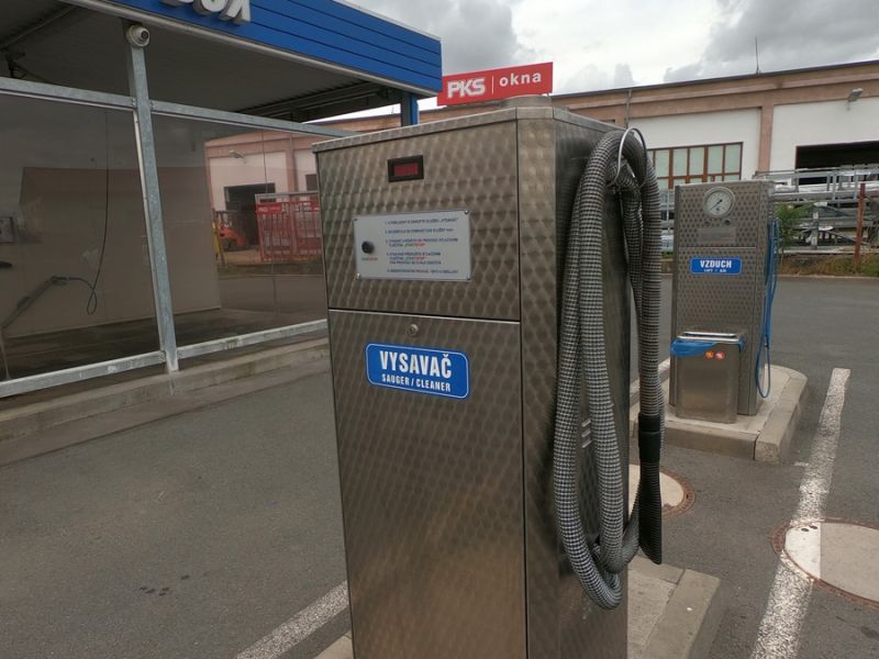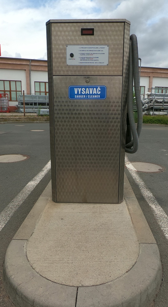 Zařízení tvoří kompaktní skříň z nerez oceli, která je osazena mincovním automatem, displejem, sací vývěvou s odlehčovací klapkou a flexibilním uchycením sací hadice, které umožňuje při vysávání pohodlnou manipulaci se sací hubicí. Připojení hadice k vysavači i sací hubice mají otočné koncovky a tak nedochází k zamotání. Dále je zde osazeno zařízení s kompresorem a řídícím systémem s ovládáním pro huštění pneumatik.